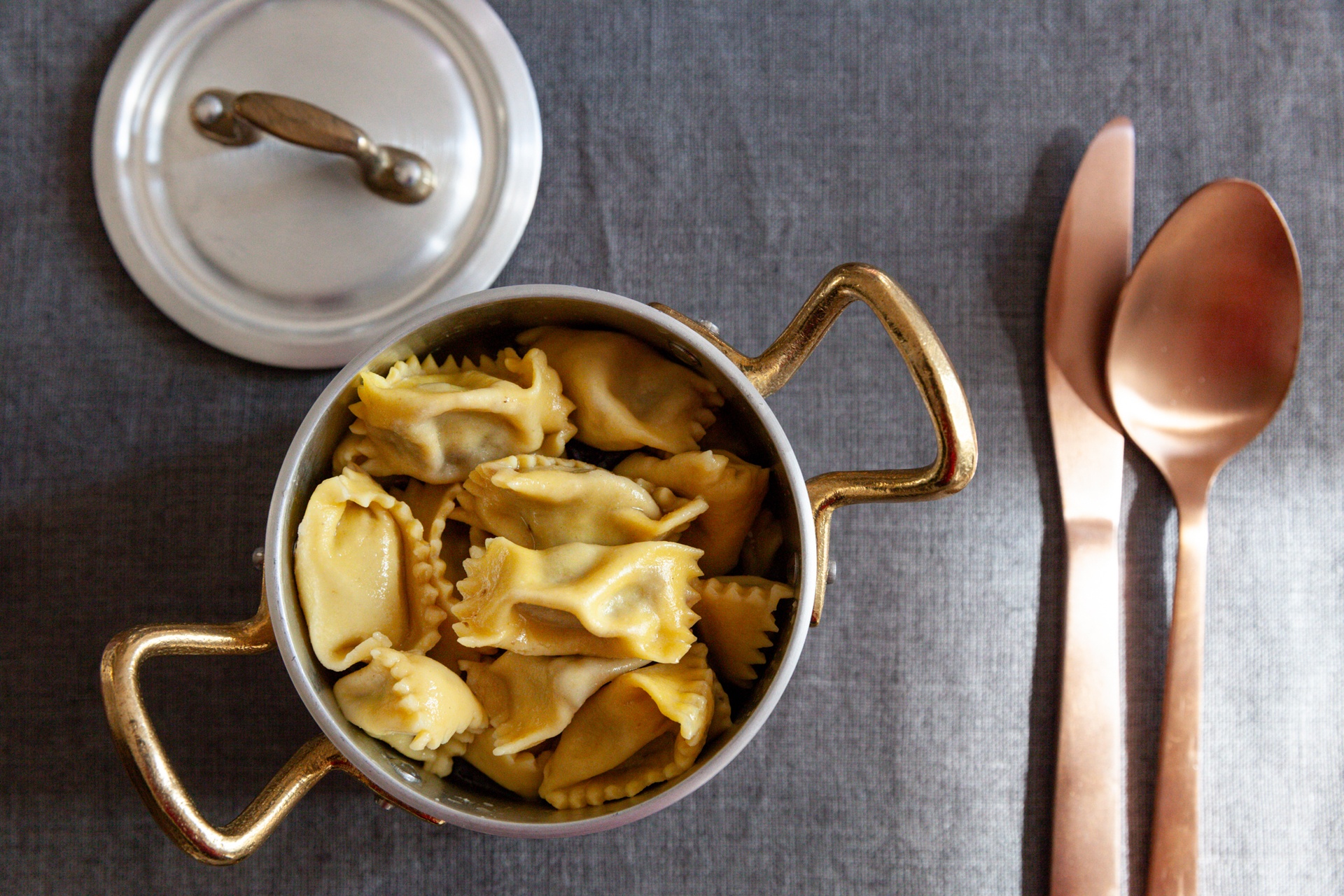 Set de preparare si servire Marcato Heritage MINI: oala cu manere, bol din portelan alb si capac- diametru 10 cm