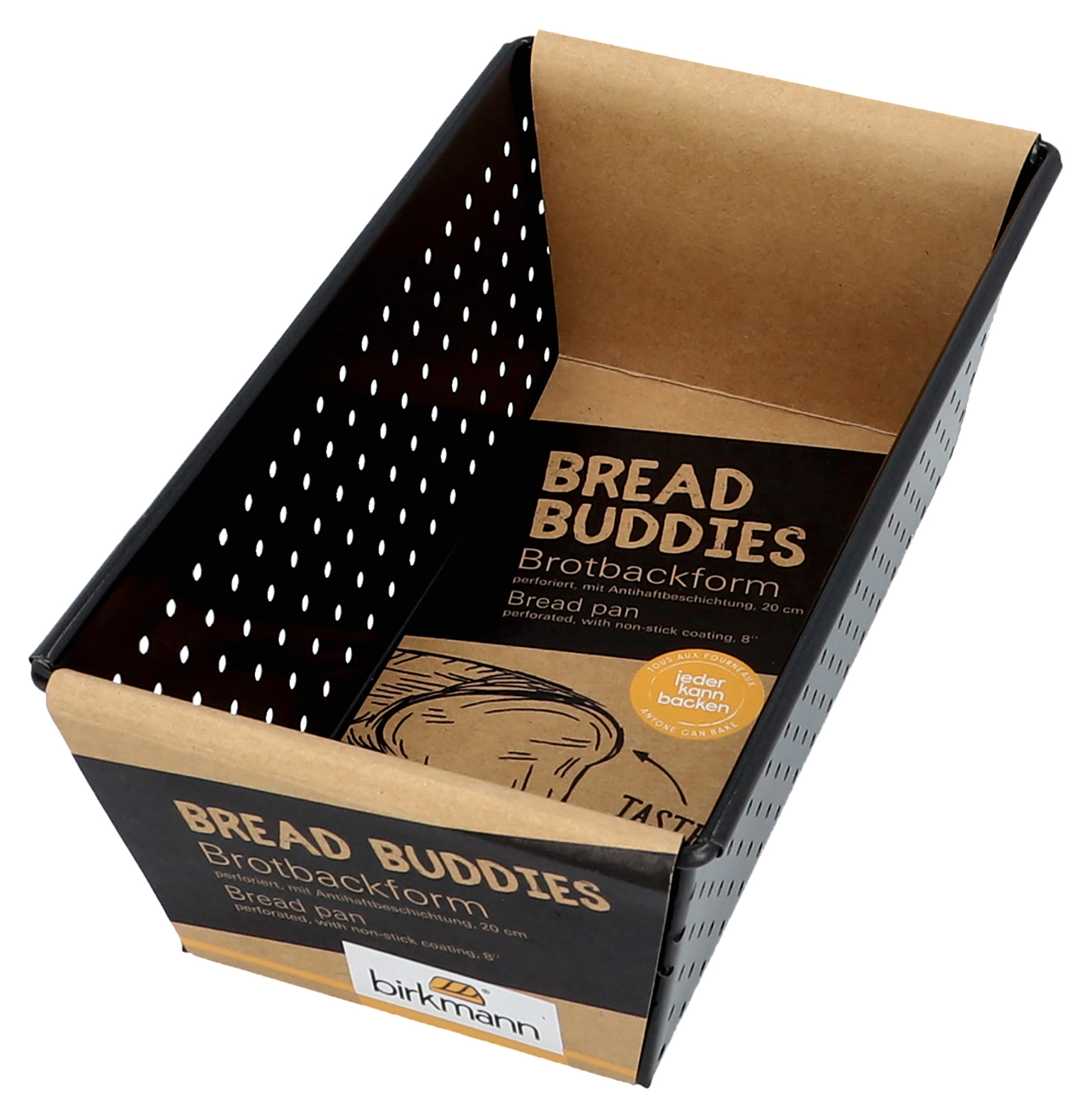 Atunci ar trebui să încerci și tu, pentru că coacerea te face fericit și te relaxeaza. Și știm despre ce vorbim. Există multe motive pentru a vă coace propria pâine. Unul important, de exemplu, este că pâinea ta este atât de lipsită de aditivi, agenți artificiali sau conservanți. Altul ar fi să economisești bani. Pentru a vă ajuta să reușiți în acest demers, avem formele potrivite pentru copt. Acestea sunt fabricate din oțel carbon perforat special, de foarte înaltă calitate și care prezintă o conductie excepțional de bună a căldurii. Perforațiile fine permit excesul de umiditate să se evapore în timpul coacerii. Rezultatul: pâine de casă, bună – crocantă la exterior și pufoasă, moale la interior. Ne-am gândit și la o acoperire antiaderență foarte bună, astfel încât să puteți scoate cu ușurință pâinea din tava după coacere.